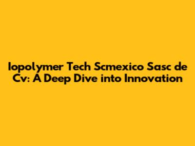 Hey there, tech enthusiasts! Let's dive into the world of Iopolymer Tech Scmexico Sasc de Cv, a company making waves in the Mexican market. We'll explore what makes them tick, their role in the industry, and the impact they're having. Buckle up, because we're about to embark on a journey through the fascinating landscape of innovation and technology.