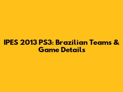 IPES 2013 PS3: Brazilian Teams & Game Details