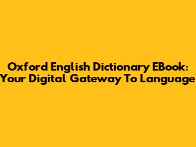 Oxford English Dictionary EBook: Your Digital Gateway To Language