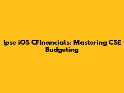 Ipse IOS CFInancials: Mastering CSE Budgeting