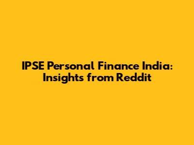 IPSE Personal Finance India: Insights From Reddit
