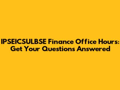 IPSEICSULBSE Finance Office Hours: Get Your Questions Answered