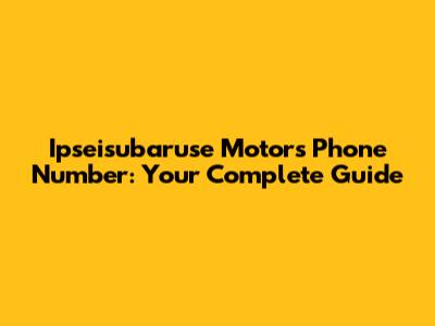 Ipseisubaruse Motors: Contact Info & Repair Details