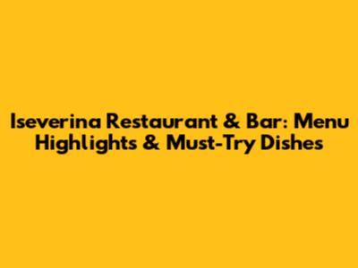 Iseverina Restaurant & Bar: Menu Highlights & Must-Try Dishes