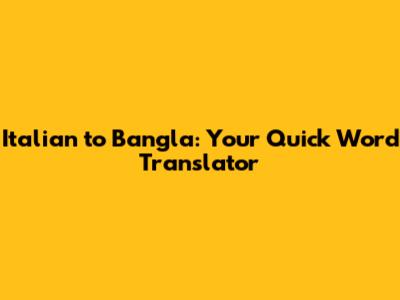 Italian To Bangla: Your Quick Word Translator