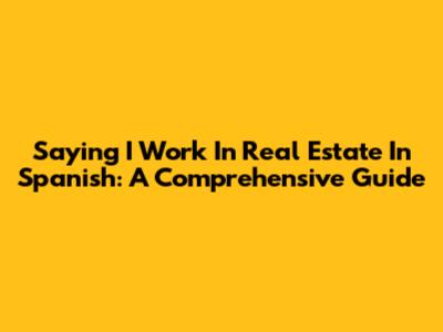 Saying "I Work In Real Estate" In Spanish: A Comprehensive Guide