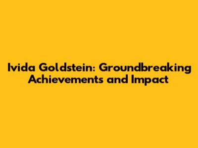 Ivida Goldstein: Groundbreaking Achievements And Impact