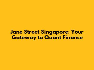 Hey guys! Ever heard of Jane Street Singapore? If you're into finance, especially the quant side of things, chances are you have. It's a big player in the financial world, and if you're looking for a challenging and rewarding career, you might want to pay attention. This article is your go-to guide for everything you need to know about Jane Street Singapore: what they do, the culture, how to land a job, and what you can expect if you join the team. Let's dive in, shall we?