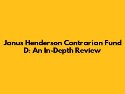 Janus Henderson Contrarian Fund D: An In-Depth Review