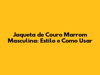 Jaqueta De Couro Marrom Masculina: Estilo E Como Usar