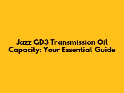 Jazz GD3 Transmission Oil Capacity: A Complete Guide