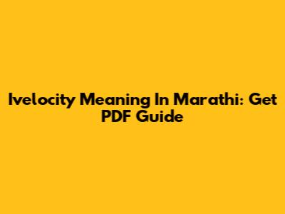 Ivelocity Meaning In Marathi: Get PDF Guide
