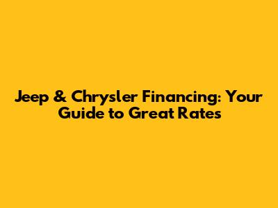 • What is the average interest rate for a Jeep or Chrysler? The average Jeep and Chrysler finance rate varies depending on your credit score, the loan term, and the current economic conditions. However, generally, if you have excellent credit, you might get rates as low as 4-6%. With a fair credit score, rates could be as high as 10-15% or even more. Rates can also be affected by the model year, the type of car, and the specific lender. It's essential to shop around and compare offers to get the best possible rate based on your individual circumstances.