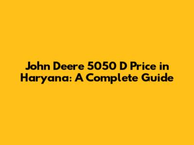 John Deere 5050 D Price In Haryana: A Complete Guide