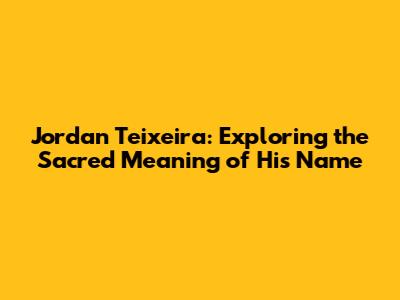 Jordan Teixeira: Exploring The Sacred Meaning Of His Name