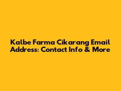 Kalbe Farma Cikarang Email Address: Contact Info & More