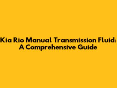 Kia Rio Manual Transmission Fluid: Your Comprehensive Guide