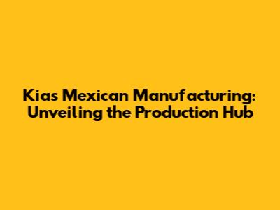 Kia's Mexican Manufacturing: Unveiling The Production Hub