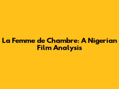 La Femme De Chambre: A Nigerian Film Analysis