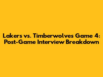 Lakers Vs. Timberwolves Game 4: Post-Game Insights