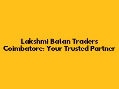 Lakshmi Balan Traders: Your Trusted Coimbatore Partner