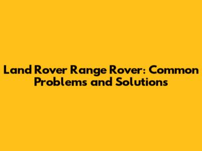 Land Rover Range Rover: Common Problems And Solutions