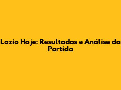 Lazio Hoje: Resultados E Análise Da Partida