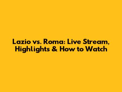 Lazio Vs. Roma: Live Stream, Highlights & How To Watch