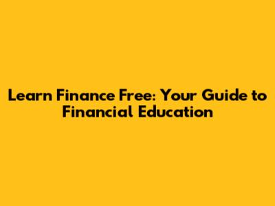 Learn Finance Free: Your Guide To Financial Education
