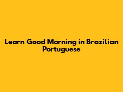 Learn Good Morning In Brazilian Portuguese