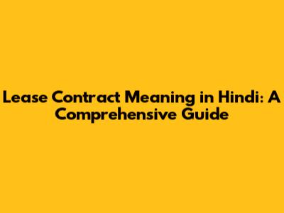Lease Contract Meaning In Hindi: A Comprehensive Guide