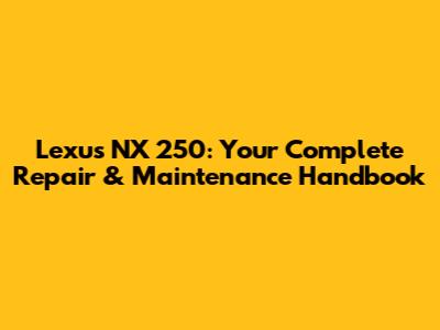 Lexus NX 250: Your Complete Repair & Maintenance Handbook
