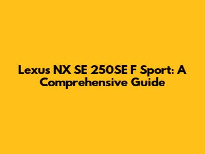 Lexus NX SE 250SE F Sport: A Comprehensive Guide