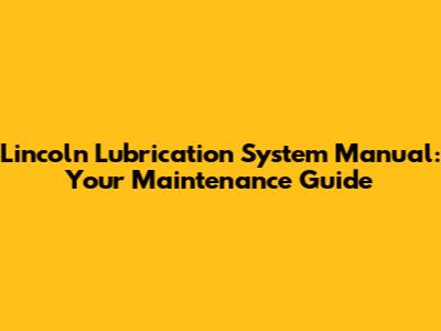 Lincoln Lubrication System Manual: Your Maintenance Guide