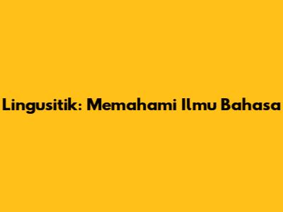 Lingusitik: Memahami Ilmu Bahasa