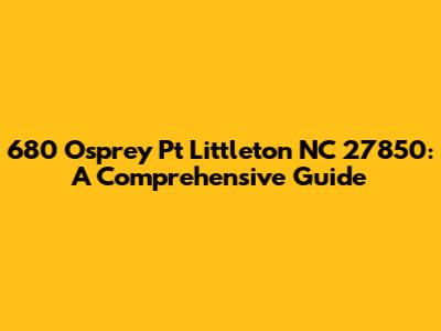 Hey guys! Let's dive into everything you need to know about 680 Osprey Pt Littleton, NC 27850. This address isn't just a string of numbers and letters; it's a gateway to a specific property and a slice of life in the charming town of Littleton, North Carolina. Whether you're considering a move, curious about the neighborhood, or simply doing some research, this guide will provide you with a comprehensive overview of the location, its surroundings, and what makes it unique. We'll explore the geographical context, the local amenities, and the potential lifestyle that comes with residing at this address. So, grab a cup of coffee, and let's get started on this exciting journey into the heart of Littleton!
