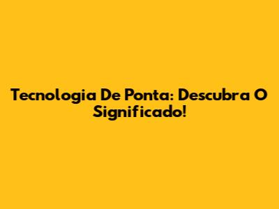Tecnologia De Ponta: Descubra O Significado!