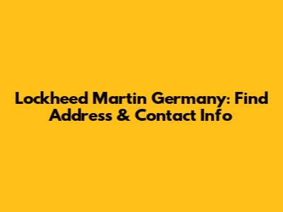 Lockheed Martin Germany: Find Address & Contact Info