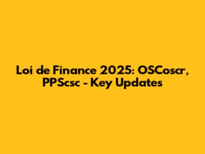 Loi De Finance 2025: OSCoscr, PPScsc - Key Updates