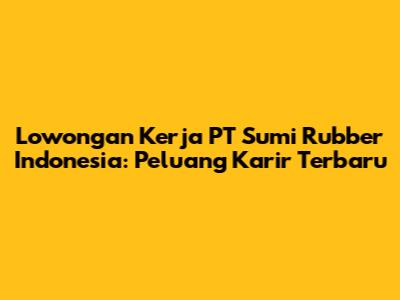 Lowongan Kerja PT Sumi Rubber Indonesia: Peluang Karir Terbaru