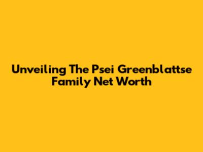 Unveiling The Psei Greenblattse Family Net Worth