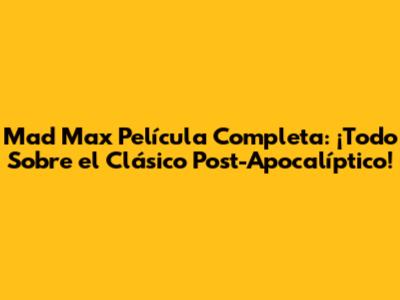 Mad Max Película Completa: ¡Todo Sobre El Clásico Post-Apocalíptico!