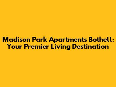 Hey guys! Looking for a fantastic place to call home in Bothell? Let's dive into everything Madison Park Apartments has to offer. Finding the perfect apartment can be tough, but with its prime location, top-notch amenities, and comfortable living spaces, Madison Park stands out as a premier choice. Let’s explore what makes this community a great option for you.