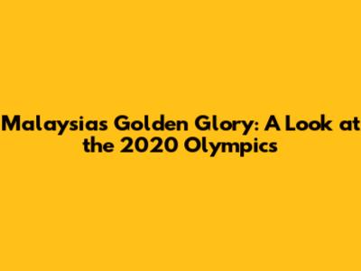 Malaysia's Golden Glory: A Look At The 2020 Olympics