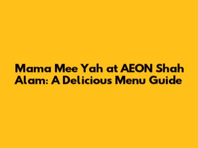 Hey guys! Are you craving some seriously delicious Malaysian cuisine? Well, if you're in the Shah Alam area, you absolutely HAVE to check out Mama Mee Yah at AEON Shah Alam. This place is a gem, offering a wide array of mouthwatering dishes that will have you coming back for more. In this article, we'll dive deep into their menu, explore some of their best dishes, and give you the lowdown on everything you need to know to have an awesome dining experience. Get ready to have your taste buds tantalized!