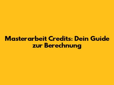 Masterarbeit Credits: Dein Guide Zur Berechnung