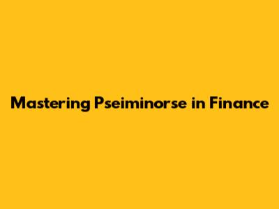 Mastering Pseiminorse In Finance