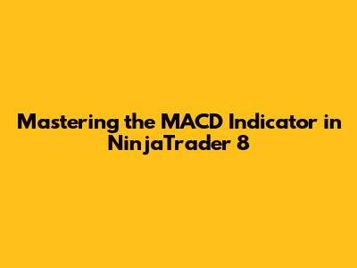 Mastering The MACD Indicator In NinjaTrader 8