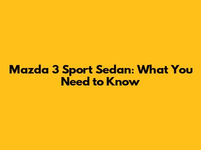 Mazda 3 Sport Sedan: What You Need To Know