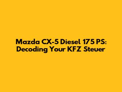 Hey everyone! If you're rolling around in a Mazda CX-5 Diesel with 175 PS, you've probably wondered about the KFZ Steuer – the vehicle tax in Germany. It can be a bit of a head-scratcher, so let's break it down, make it super clear, and ensure you're in the know. We'll delve into the specifics for your car, explore the factors influencing the tax amount, and even give you some tips on how to potentially reduce it. Let's get started, guys!